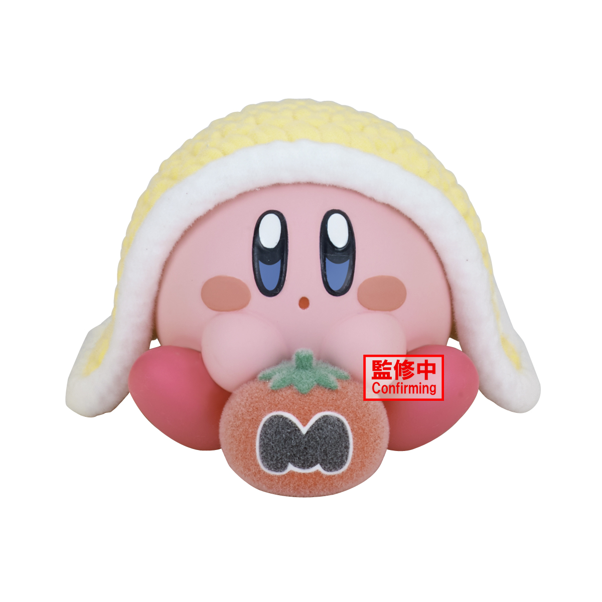 Kirby is from the Nintendo’s Kirby video game series, and you see him underneath a blanket and holding a maxim tomato.